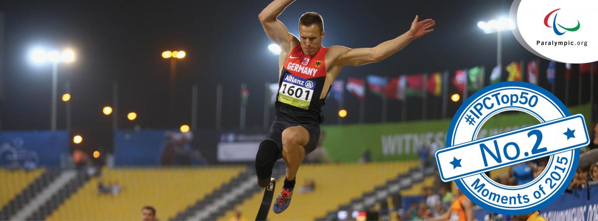 His astonishing leap of 8.40m in the men’s long jump T44, a distance good enough to win Olympic gold at London 2012, has made it to No. 2 in the International Paralympic Committee’s Top 50 Moments of 2015.