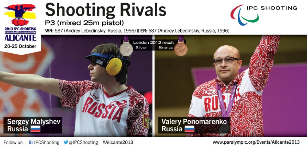 Russians Malyshev and Ponomarenko will face off in the P3 (mixed 25m pistol SH1)