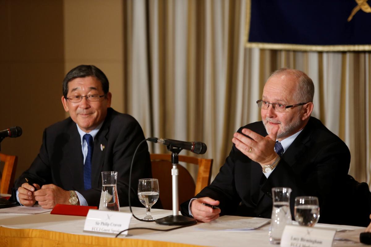 IPC President Sir Philip Craven and Governing Board member Yasuhi Yamawaki at the Foreign Correspondents’ Club of Japan.