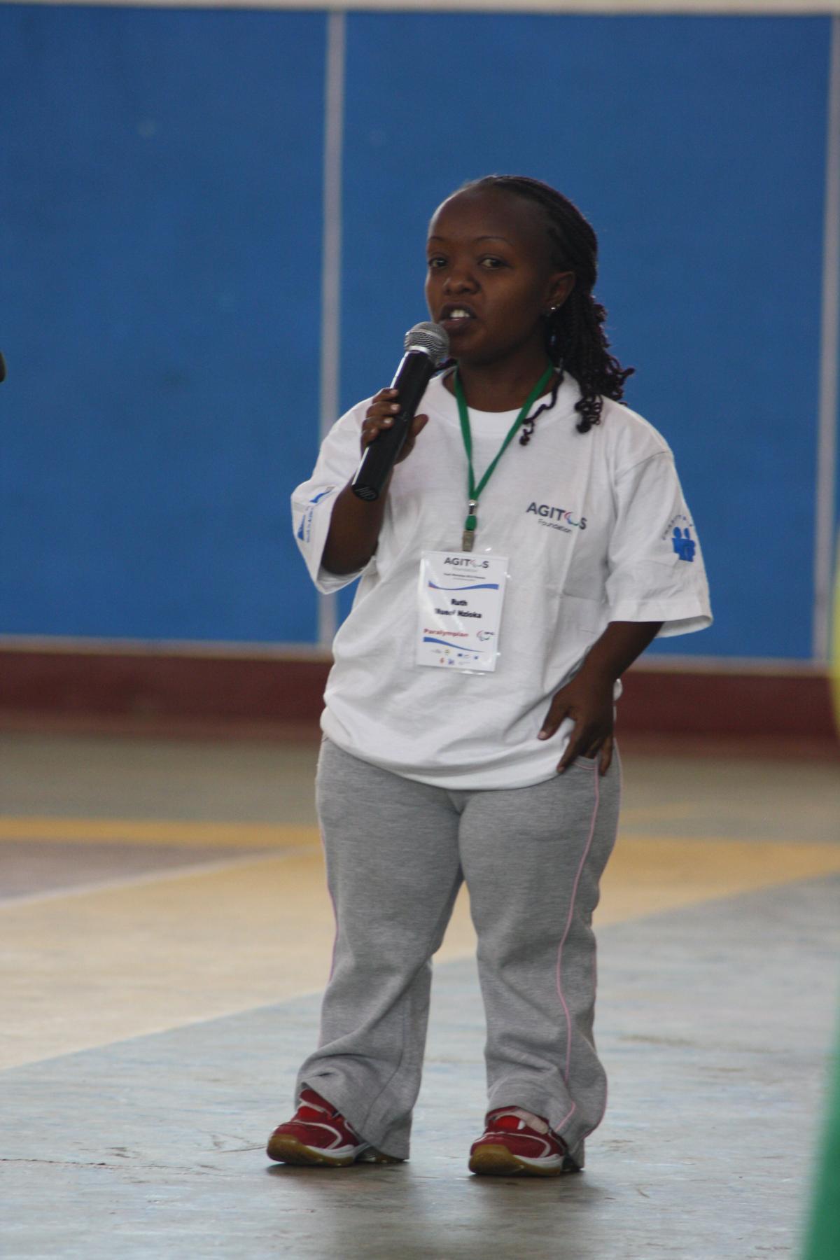 Para-Table Tennis player Ruth Mueni aims to combat prejudices back home through new challenges. 13 Mar 2012Former Kenyan athlete Ruth Mueni Nzioka gives an Opening Ceremony speech at the Agitos Foundation Youth Workshop in Rwanda.