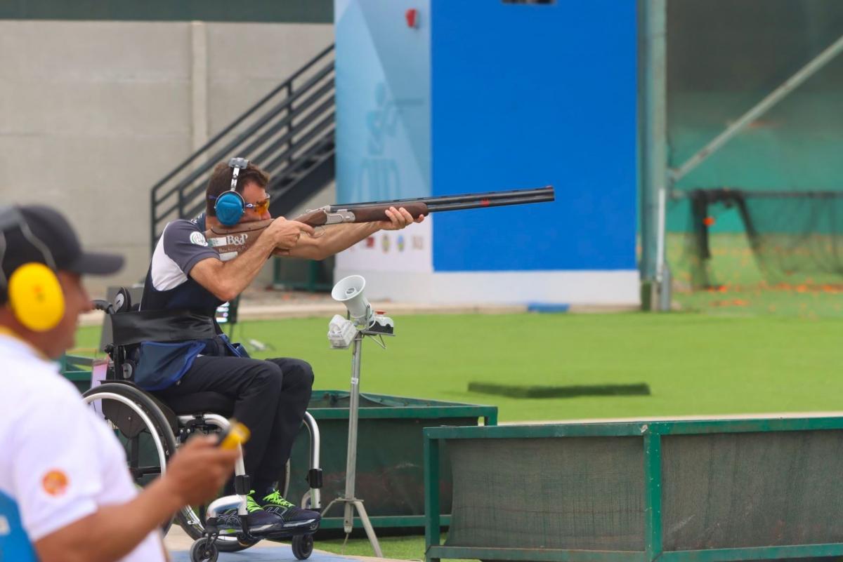 A Davide Fedigucci le tocó celebrar la medalla de oro para Italia cuando se impuso al finlandés Juha Myllymaki en el tiro con escopeta al aire libre, en la prueba PT1, un foso mixto con SG-S sentado.