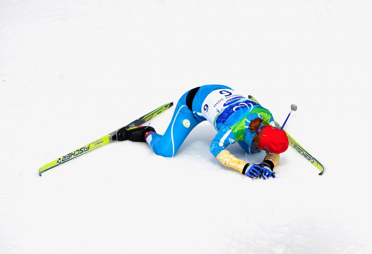 Oleksandra Kononova collapsing after winning a race at the Vancouver 2010 Paralympic Winter Games