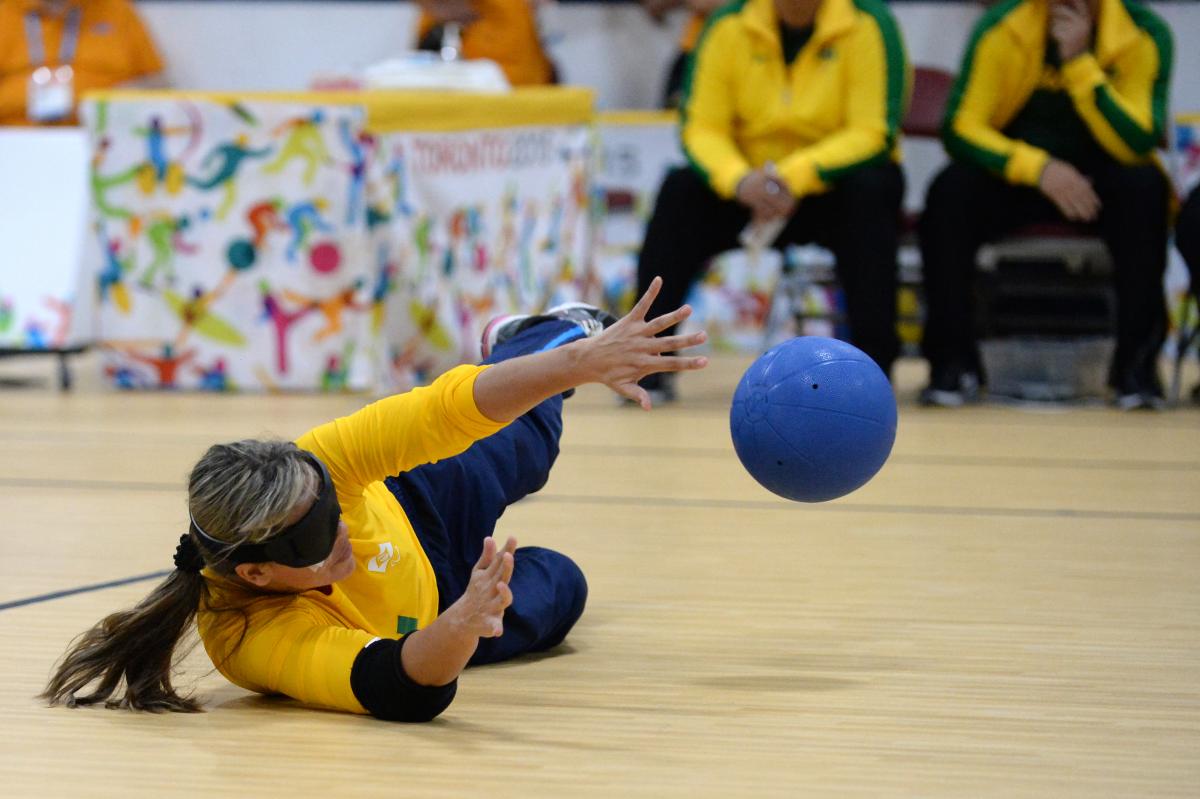 Team Brazil in the Woman's Goalball Gold medal match at the Toronto 2015 Parapan American Games.