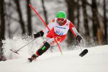 Chris Williamson of Canada competes in the Men's Giant Slalom Visually Impaired at the Sochi 2014 Paralympic Winter Games.