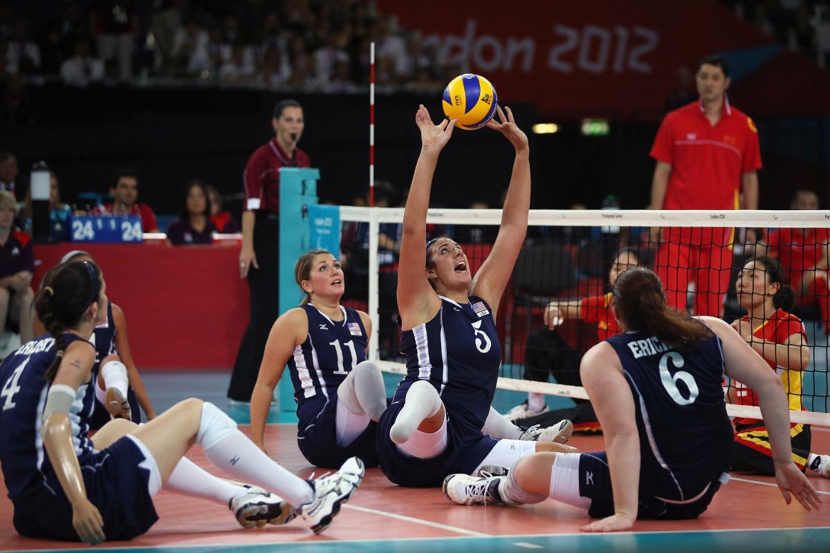 Katie Holloway sets the ball for USA against China in the gold-medal game at the London 2012 Paralympic Games.