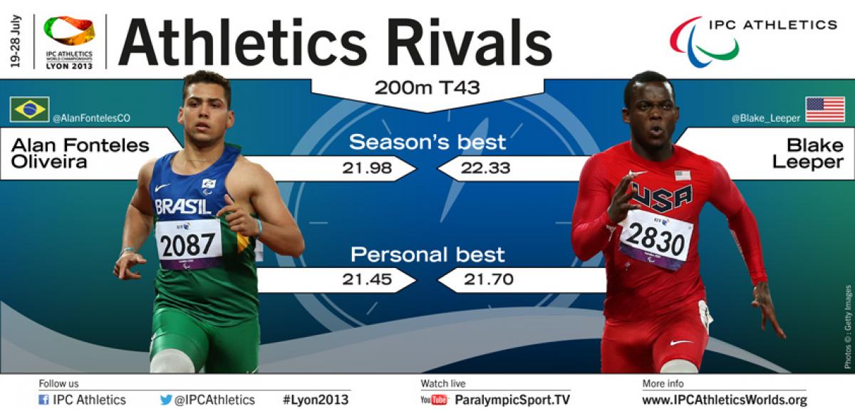 Will Brazil’s Alan Fonteles Oliveira be able to squeak by the USA’s Blake Leeper for gold at the IPC Athletics World Championships? 18 Jul 2013